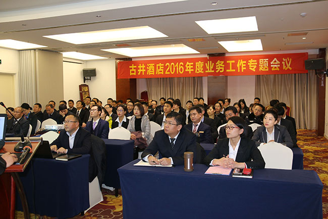 1月18日,古井酒店發(fā)展股份公司舉行2016年度業(yè)務(wù)工作專題會(huì)暨年度安全工作會(huì)議,會(huì)議在合肥古井君萊酒店13樓會(huì)議室召開,公司高管、總部各業(yè)務(wù)部門負(fù)責(zé)人、各門店負(fù)責(zé)人近百人參加會(huì)議。